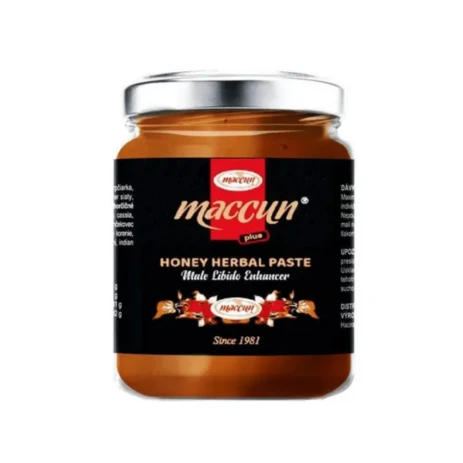 This herbal paste is widely used as a natural vitality booster and is especially popular for supporting sexual performance, increasing endurance, and reducing fatigue. Rich in antioxidants and essential nutrients, Maccun Honey Herbal Paste promotes immune health and aids in digestion. Its smooth texture and delightful taste make it a versatile addition to your diet, whether enjoyed on its own, mixed into smoothies, or drizzled over your favorite dishes. Experience the harmonious balance of flavor and health with every spoonful.Elevate your wellness journey with Maccun Honey Herbal Paste, a product that embodies nature's best offerings. Perfect for health-conscious individuals, this herbal paste is not just a treat for your taste buds but also a step towards a healthier lifestyle. Make Maccun Honey a staple in your pantry and savor the benefits of this extraordinary herbal blend.